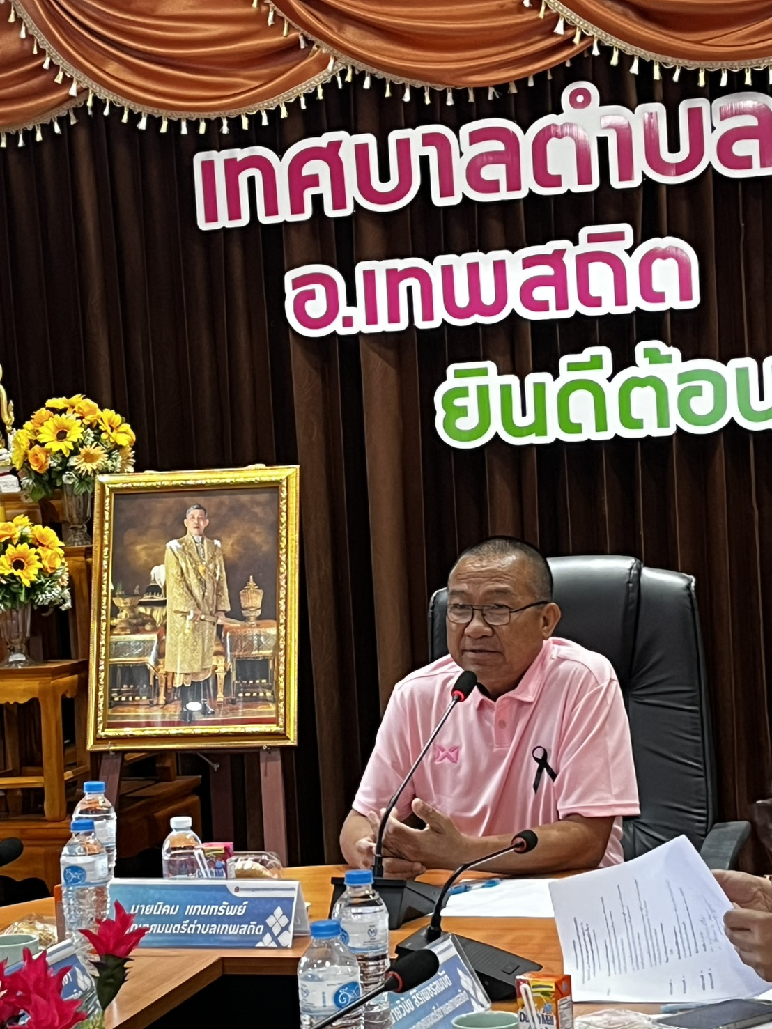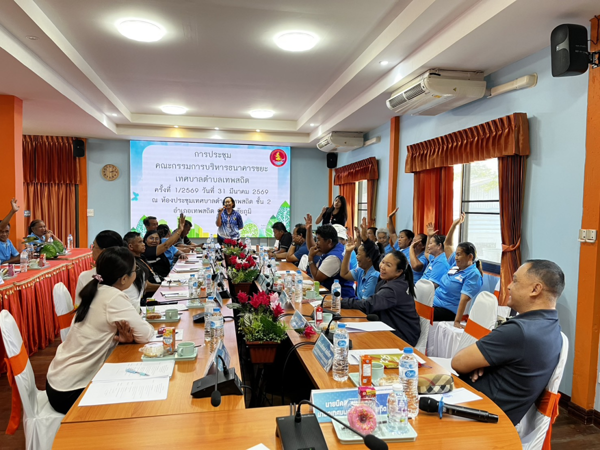 วันอังคาร ที่ 31 มีนาคม 2569 เวลา 13:00 น. ณ ห้องประชุมเทศบาลตำบลเทพสถิต ชั้น 2 เทศบาลตําบลเทพสถิต นำโดย นายนิคม แทนทรัพย์ นายกเทศมนตรีฯ นายวินัย สิริเพชรสมบัติ รองนายกเทศมนตรีฯ พ.อ.อ.พีระพงษ์ ภักดีรักษา รองนายกเทศมนตรีฯ นางรังสิยา แทนทรัพย์ ประธานสภาฯ นายสรวิชญ์ สมรูป ปลัดเทศบาลฯ ,สมาชิกสภาฯ , ผู้ใหญ่บ้านหมู่1 และ 2 , ตัวแทนคณะกรรมการ 7 ชุมชน พร้อมด้วยเจ้าหน้าที่เทศบาลฯ ***ประชุมโครงการขับเคลื่อนการดำเนินงานธนาคารขยะ ครั้งที่ 1/2569*** มีวัตถุประสงค์ -เพื่อสนับสนุนและยกระดับการขับเคลื่อนการดำเนินการของธนาคารขยะชุมชน -เพื่อเป็นการสนับสนุนให้ประชาชนคัดแยกขยะรีไซเคิลในครัวเรือน มีผู้เข้าร่วมประชุมจำนวน 60 คน