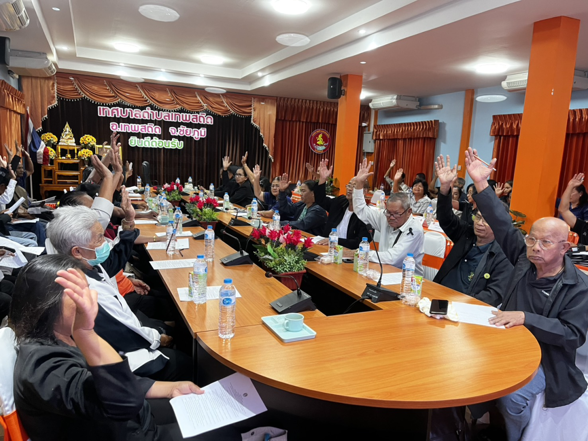 วันศุกร์ที่ 7 พฤศจิกายน 2568 เวลา 13.30 น. ณ ห้องประชุมเทศบาล ชั้น 2 นำโดยนายนิคม แทนทรัพย์ นายกเทศมนตรีตำบลเทพสถิต พร้อมด้วย พ.อ.อ.พีระพงษ์ ภักดีรักษา รองนายกฯเทศมนตรี นางรังสิยา แทนทรัพย์ ประธานสภาเทศบาล นายสรวิชญ์ สมรูป ปลัดเทศบาล และคณะกรรมการทั้ง 7 ชุมชน **ลงนามบันทึกข้อตกลง (MOU) ว่าด้วยความร่วมมือในการลดคัดแยกขยะมูลฝอย การจัดการสิ่งปฏิกูล การปกป้องและรักษาสิ่งแวดล้อม ในเขตเทศบาลตำบลเทพสถิต** 1.ดำเนินการคัดแยกขยะ ในแต่ละประเภท ได้แก่ - ขยะอินทรีย์ คัดแยกขยะอินทรีย์ (เศษอาหาร) ร่วมโครงการถังขยะเปียกลดโลกร้อน - ขยะรีไซเคิล คัดแยกขยะรีไซเคิล (แก้ว กระดาษ พลาสติก โลหะหรืออโลหะ) เพื่อนำไปขายหรือรวบรวมบริจาค - ขยะติดเชื้อ คัดแยกขยะติดเชื้อ ที่เกิดจากผู้ป่วย การปฐมพยาบาล การรักษาสัตว์ (สำลี ผ้าก๊อชทำแผล) แล้วนำไปกำจัดยังต้นสังกัดที่ท่านทำงานอยู่ - ขยะมูลฝอยอันตราย คัดแยกขยะมูลฝอยอันตราย (หลอดไฟ ถ่านไฟฉาย แบตเตอรี่ มือถือเก่า) แล้วนำไปใส่ไว้ในจุดรับขยะอันตรายเทศบาลตำบลเทพสถิตที่ตั้งไว้ในทุกชุมชน โดยเทศบาลจะนำส่งไปกำจัดต่อไป - ขยะทั่วไป คัดแยกขยะทุกประเภ