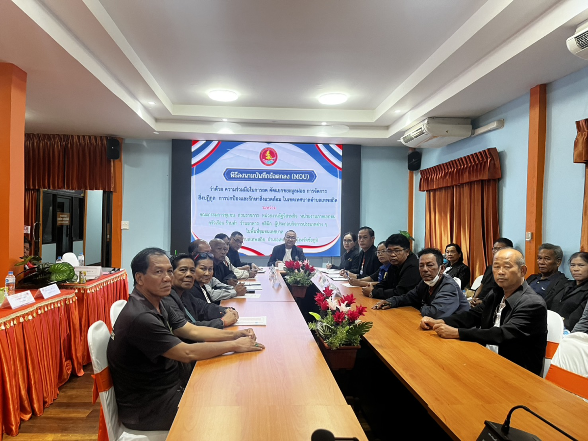 พิธีลงนามบันทึกข้อตกลง (MOU) ว่าด้วยความร่วมมือในการลดคัดแยกขยะมูลฝอย การจัดการสิ่งปฏิกูล การปกป้องและรักษาสิ่งแวดล้อม ในเขตเทศบาลตำบลเทพสถิต