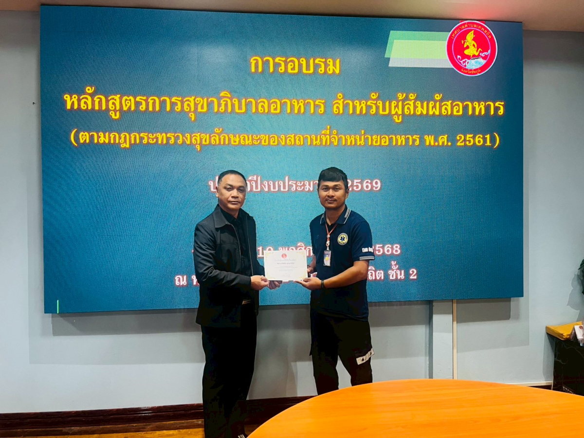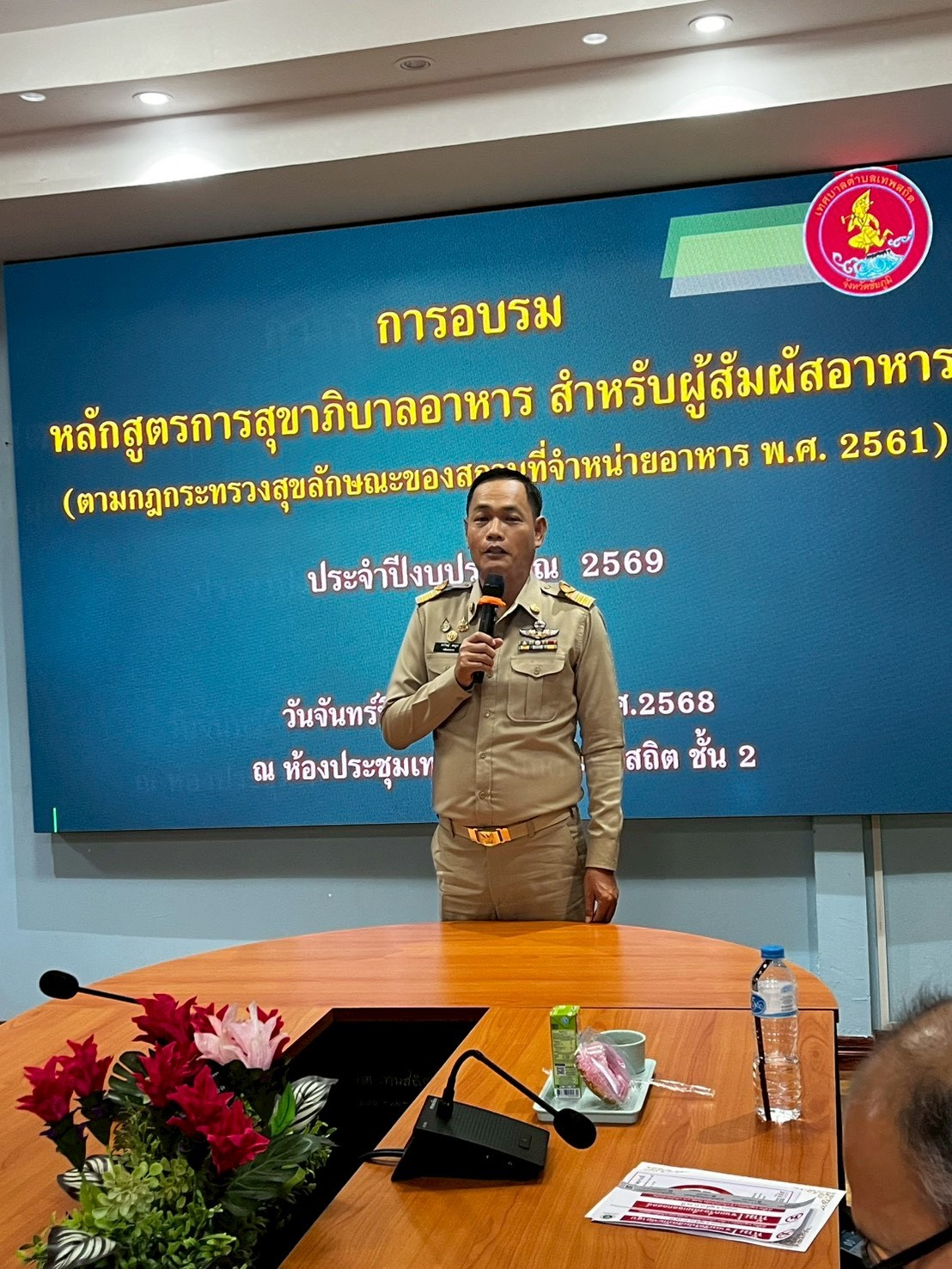 อบรมหลักสูตรการสุขาภิบาลอาหารสำหรับผู้สัมผัสอาหาร (ตามกฎกระทรวงสุขลักษณะของสถานที่จำหน่ายอาหาร พ.ศ. 2561 ภายใต้โครงการมหกรรมอาหาร สะอาด ปลอดภัย เทศบาลตำบลเทพสถิต ประจำปีงบประมาณ 2569