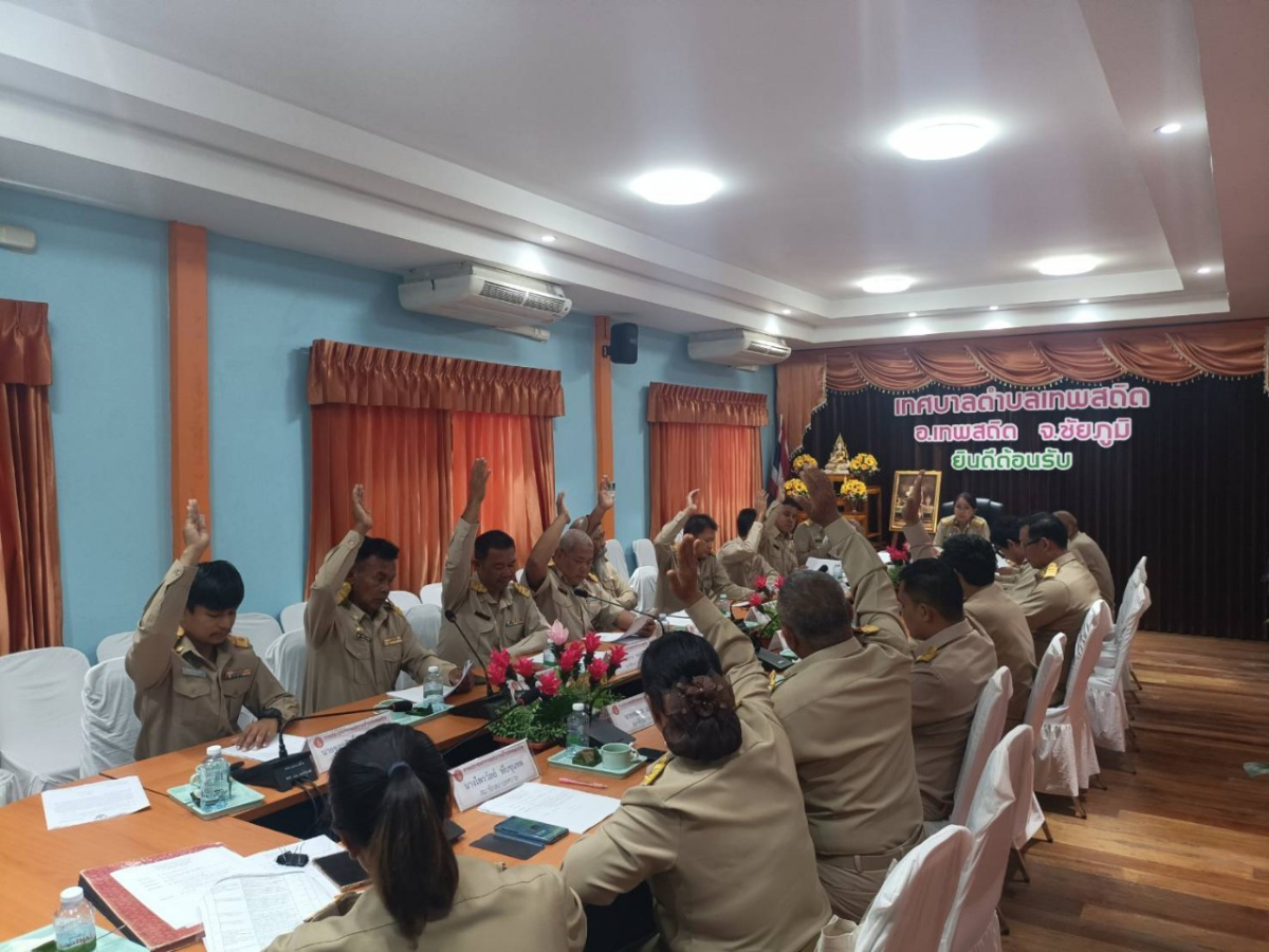 โดยมี นายนิคม แทนทรัพย์ นายกเทศมนตรีตำบลเทพสถิต ในนามฝ่ายคณะผู้บริหารเข้าร่วมประชุม พร้อมด้วยคณะผู้บริหาร สมาชิกสภาเทศบาลฯ ผู้นำชุมชน เจ้าหน้าที่เทศบาล และนายสรวิชญ์ สมรูป ปลัดเทศบาลฯ ในนามเลขานุการสภาเทศบาล